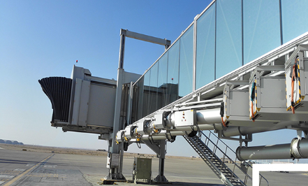 A380登機(jī)橋二層U1超高艙門(mén)而設(shè)計(jì)的登機(jī)橋,采用了行業(yè)內(nèi)首創(chuàng)的四輪驅(qū)動(dòng)行走機(jī)構(gòu)及其控制系統(tǒng)。旋轉(zhuǎn)伸縮式機(jī)橋旋轉(zhuǎn)伸縮式旅客登機(jī)橋是對(duì)接飛機(jī)和機(jī)場(chǎng)航站樓(或固定橋)的一種帶有封閉式旅客過(guò)道的登機(jī)設(shè)備。T橋T型旅客登機(jī)橋是對(duì)接飛機(jī)和機(jī)場(chǎng)航站樓(或固定橋)的一種帶有T字型封閉式通道的登機(jī)設(shè)備,通過(guò)伸縮通道平移機(jī)構(gòu)實(shí)現(xiàn)登機(jī)橋的平移運(yùn)動(dòng)。